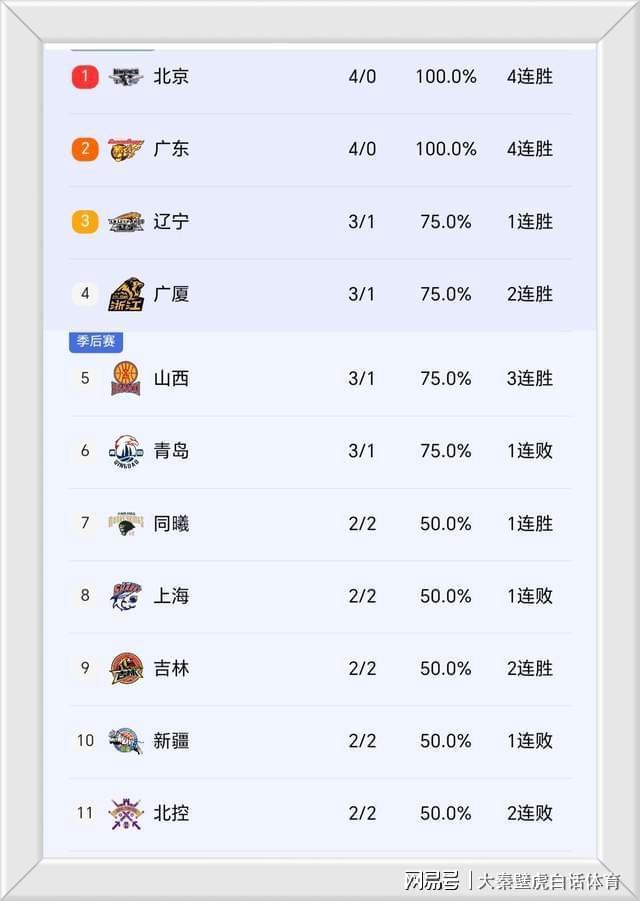 ①、北京男籃和廣東男籃新賽季4戰全勝,成為唯二兩支保持不敗的球隊,分列第一二位;