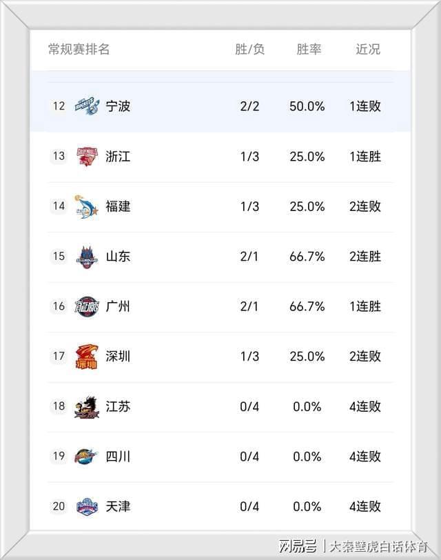 ③、江蘇男籃、四川隊以及天津男籃4連敗,至今未嘗勝績,排在墊底位置。