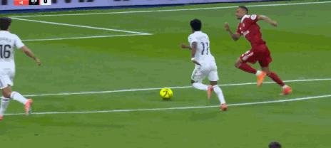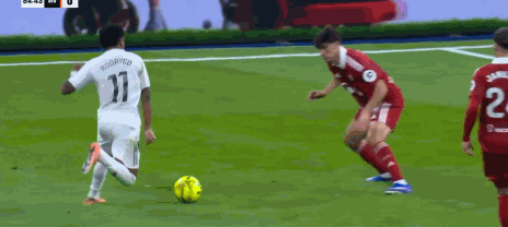 第39分鐘,羅德里戈開出任意球,貝林厄姆頭槌破門,皇馬1-0