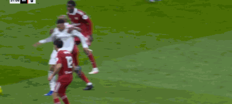 第40分鐘,皇馬進球前,馬爾康-特謝拉飛鏟羅德里戈被黃牌警告
