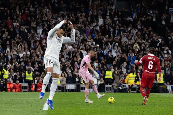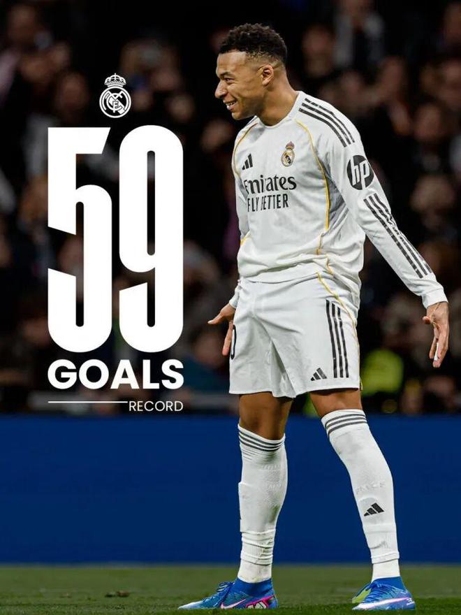 此役上半場第38分鐘貝林厄姆為皇馬打破僵局,下半場第86分鐘姆巴佩主罰點球鎖定勝局。進球后姆巴佩做出C羅招牌式慶祝動作,向偶像致敬。此球是2025年姆巴佩在皇馬的第59球,追平C羅的皇馬隊史單年度進球紀錄(2013年),這對姆巴佩而言是有里程碑意義的紀錄。雖然皇馬單年度進球紀錄不會有任何獎項,但將永載皇馬史冊。